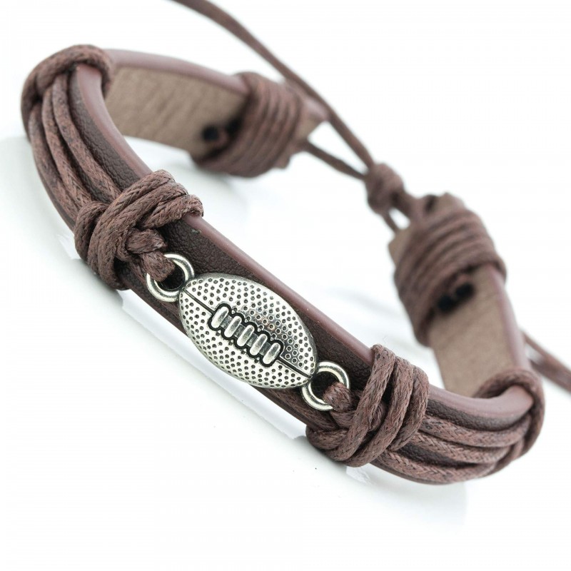 Sports Leather Football Basketball Hockey Alloy Adjustable Hand Woven Football Leather Bracelet